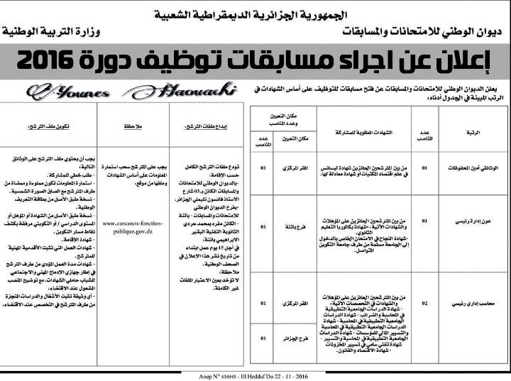اعلان توظيف بالديوان الوطني للامتحانات والمسابقات 22نوفمبر 2016